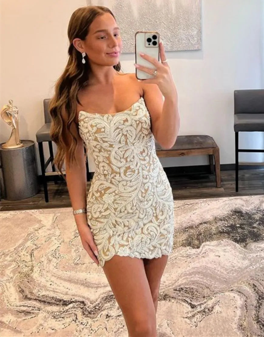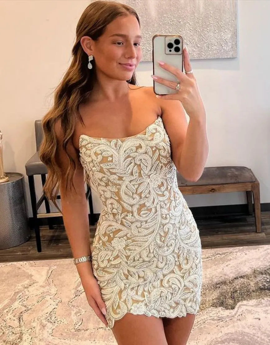 Strapless Bodycon Homecoming Dress With Beading - US 2 / UK 6 / EU 32
