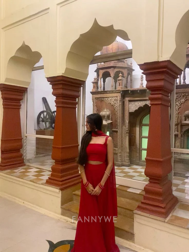 Two Piece A-Line Square Neck Charming Red Long formal dresses Bridesmaid Dresses evening gown Prom Dress