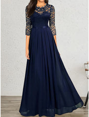 Women‘s Black Dress Prom Dress Black Lace Dress Party Dress Long Dress Maxi Dress Green 3/4 Length Sleeve Spring Fall Crew Neck Fashion - Navy Blue / US 2 / UK 6 / EU 32