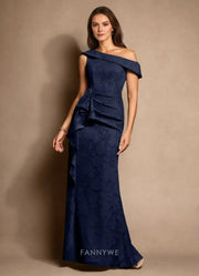 Elegant One-Shoulder Ruffled Floral Brocade Mermaid Maxi Dress Mother of the Bride Dress
