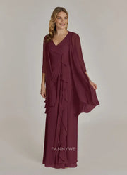 Plus size V-Neck Three-Quarter Sleeve Chiffon Maxi Dress Mother of the Bride Dress. Occasions: Prom, black tie events, formal weddings, and upscale parties.