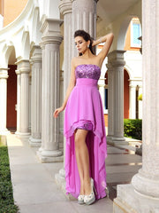 A-Line/Princess Strapless Beading Sleeveless High Low Chiffon Cocktail Dresses
