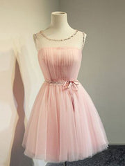 A-Line/Princess Tulle Beading Scoop Sleeveless Short/Mini Homecoming Dresses