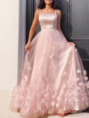 A-Line Prom Dresses Elegant Dress Wedding Guest Engagement Floor Length Sleeveless Spaghetti Strap Tulle with Appliques