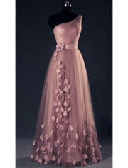 A-Line Prom Dresses Elegant Dress Wedding Guest Floor Length Sleeveless One Shoulder Tulle with Appliques