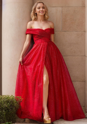 A-line Strapless Tulle Ball Long Sleeve Slit formal dresses Bridesmaid Dresses evening gown Prom Dress - US 2 / UK 6 / EU 32 / Red