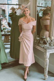 Off - Shoulder Ruched Mother of the Bride Dress. Occasions: Prom, black tie events, formal weddings, and upscale parties.