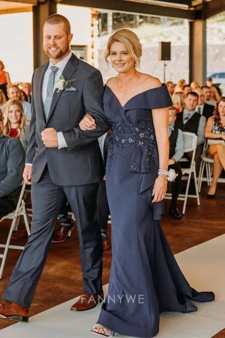 Off - Shoulder Embellished Mermaid Mother of the Bride Dress. Occasions: Prom, black tie events, formal weddings, and upscale parties.