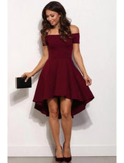 Fairy Cute Homecoming Party Wear Dress Off Shoulder Short Sleeve Short Mini Stretch Satin