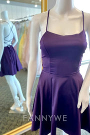 FannyWe A-Line Purple Lace-Up Short Homecoming Dress