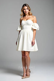 FannyWe Elegant A Line Off the Shoulder White Satin Short Graduation Dress - US 2 / UK 6 / EU 32