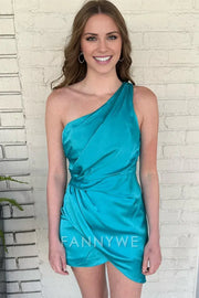 FannyWe Elegant Jade Faux-Wrap One Shoulder Satin Homecoming Dress formal wear dresses