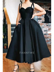 FannyWe Simple Ball Gown Cocktail Dresses Vintage Dress Valentine's Day Wedding Guest Tea Length Sleeveless Spaghetti Strap Wednesday Addams Family Satin with Pleats - US 2 / UK 6 / EU 32