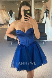 FannyWe Simple Blue Strapless A-Line Short Homecoming Dress formal wear dresses