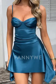 FannyWe Simple Spaghetti Straps V-Neck Pleated Satin Sleeveless Short Homecoming Dress formal wear dresses