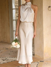 FannyWe Simple Women's Long Dress Maxi Dress Prom Dress Casual Dress Satin Dress Summer Dress Fashion Outdoor Holiday Date Regular Fit Plain Sleeveless Halter Neck Black Apricot Rose Pink Summer Spring - US 2 / UK 6 / EU 32
