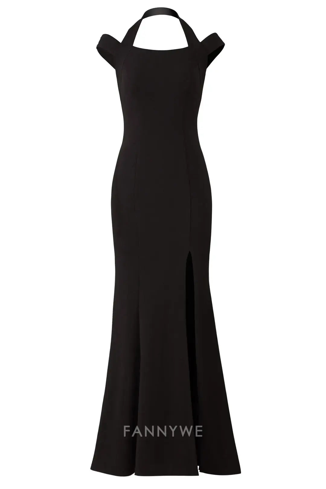 Step into elegance with Fannywe's halter neck off-shoulder slit mermaid maxi dress. The halter neck + off-shoulder design, paired with a sleek mermaid silhouette, highlights your figure beautifully, while the front slit adds layers of sophistication and allure. The classic black hue creates a stunning, timeless fit, perfect for formal events or evening galas. The structured fabric further elevates its appeal, ensuring you exude modern glamour at any sophisticated occasion.