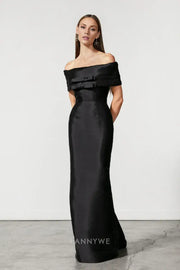 Off-Shoulder Bow-Accented Satin Evening dress: Suitable for: proms, evenings,formal dinners, black-tie weddings, and upscale parties.