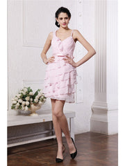 Sheath/Column Spaghetti Straps Sleeveless Ruffles Short Chiffon Cocktail Dresses