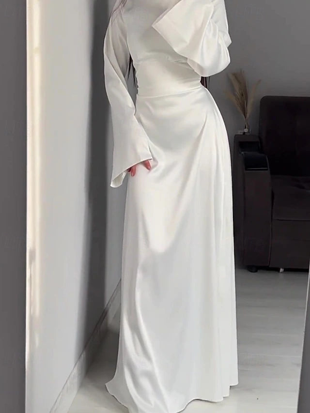 Women's Long Dress Maxi Dress Prom Dress Party Dress Cocktail Dress Elegant Modern Evening Party Party Wedding Guest Regular Fit Plain Long Sleeve Crew Neck White Spring Fall