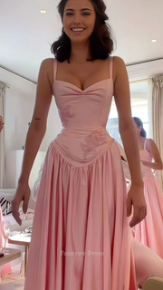 A-Line Elegant Spaghetti Straps Pink Long formal dresses Bridesmaid Dresses evening gown Prom Dress