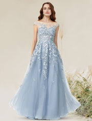 A-Line Empire Elegant Party Wear Formal Evening Dress Jewel Neck Sleeveless Floor Length Lace with Appliques