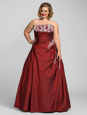 Ball Gown Plus Size Prom Formal Evening Dress Strapless Sleeveless Floor Length Taffeta with Beading Appliques