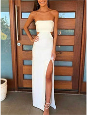 Bridal Shower Little White Dresses Wedding Dresses Sheath / Column Sweetheart Sleeveless Floor Length Stretch Fabric Bridal Gowns With Split Front Solid Color