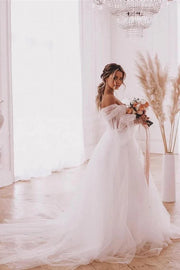 A-Linie Boho Brautkleider mit abnehmbaren langen Puffärmeln