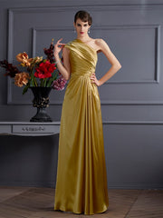 A-Linie/Princess-Linie One-Shoulder-Träger Ärmellos Bodenlang Satin Kleider