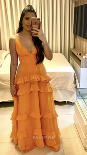 A-Linie Elegante Spaghettiträger Mehrlagig Orange Lange Abendkleider Brautjungfernkleider Abendkleid Ballkleid
