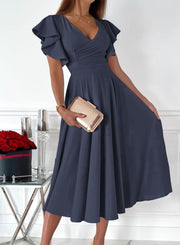 A-Linie Elegant V-Ausschnitt Kurzarm Abendkleider Brautjungfernkleider Abendkleid Ballkleid