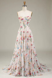 A-Linien-Ballkleid mit langem Korsett und Blume