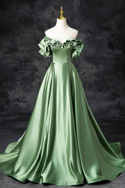 A-Linie, schulterfrei, formelles langes Abendkleid aus Satin