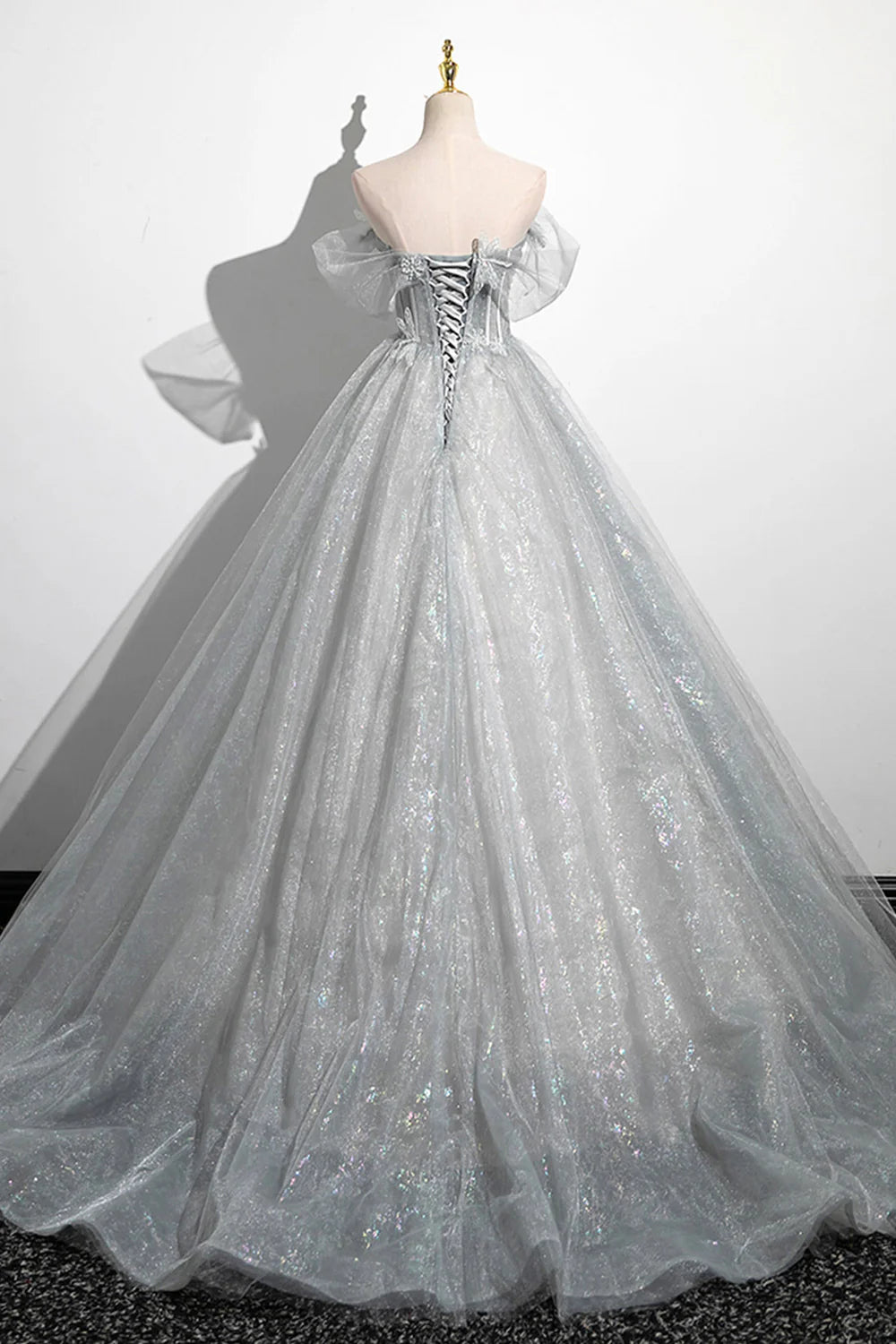 A-Linie, schulterfrei, Tüll, Ballkleid, Korsett, bodenlanges Partykleid