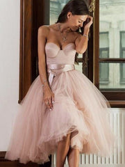 A-Linie/Princess-Linie Tüll Schärpen/Bänder/Gürtel Herzausschnitt Ärmellos Wadenlang Homecoming Kleider