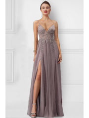 A-Linie Ballkleider Blumenkleid Partykleidung Ballkleid Bodenlang Ärmellos Spaghettiträger Tüll mit Schlitz
