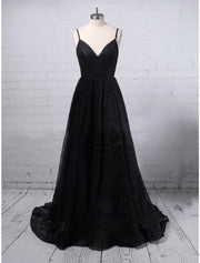 A-Linie Ballkleider Glitzerndes Kleid Partykleidung Ball Bodenlang Ärmellos Spaghettiträger Pailletten mit Schlitz