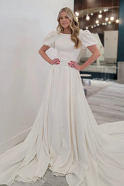 A-Linie Puffärmel Satin geschwungenes langes Brautkleid