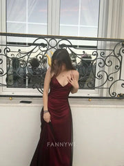 A-Linie Einfache Spaghettiträger Burgund Lange Abendkleider Brautjungfernkleider Abendkleid Ballkleid