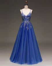 A-Linie Spaghettiträger Langes Glitzer Tüll Ballkleid