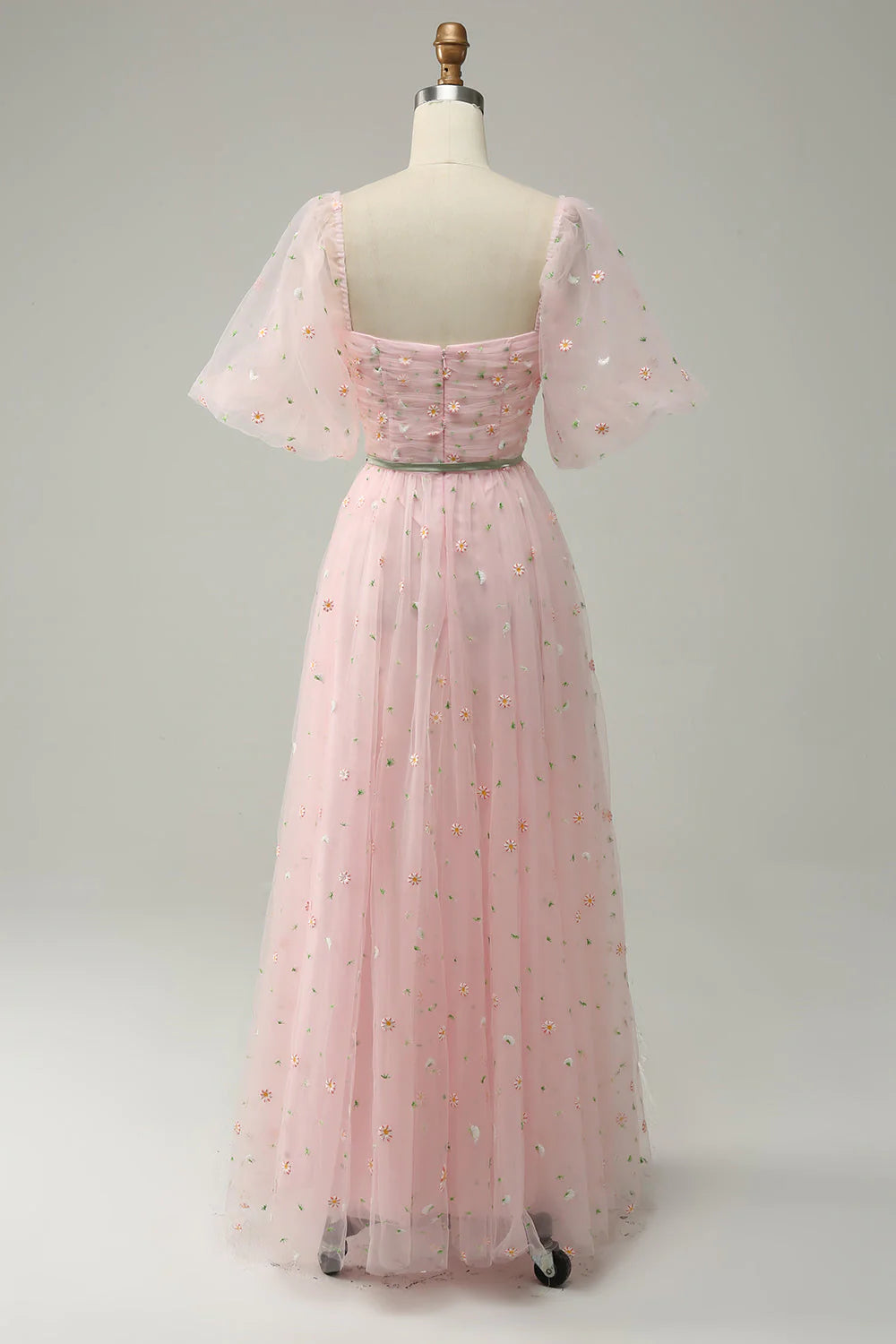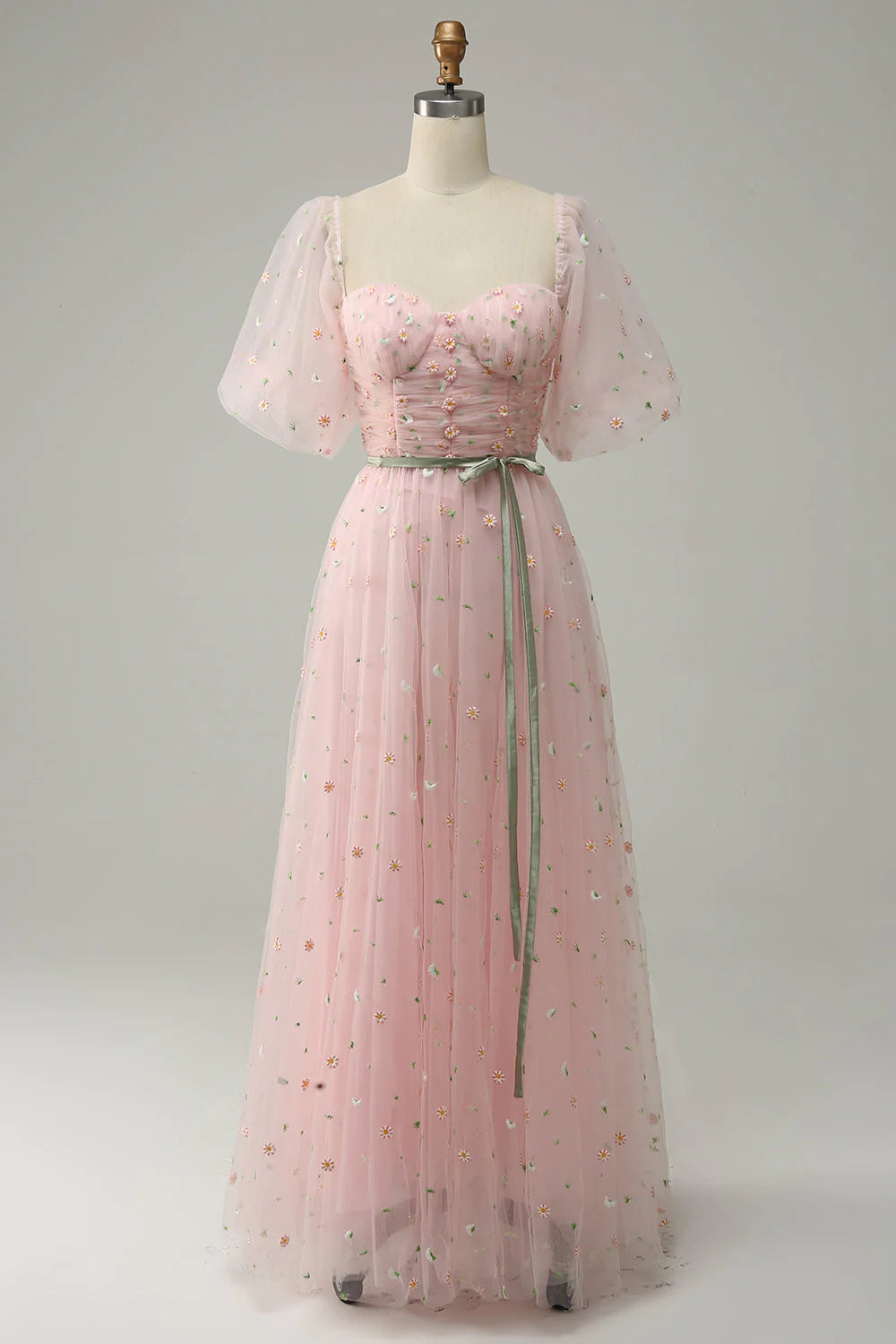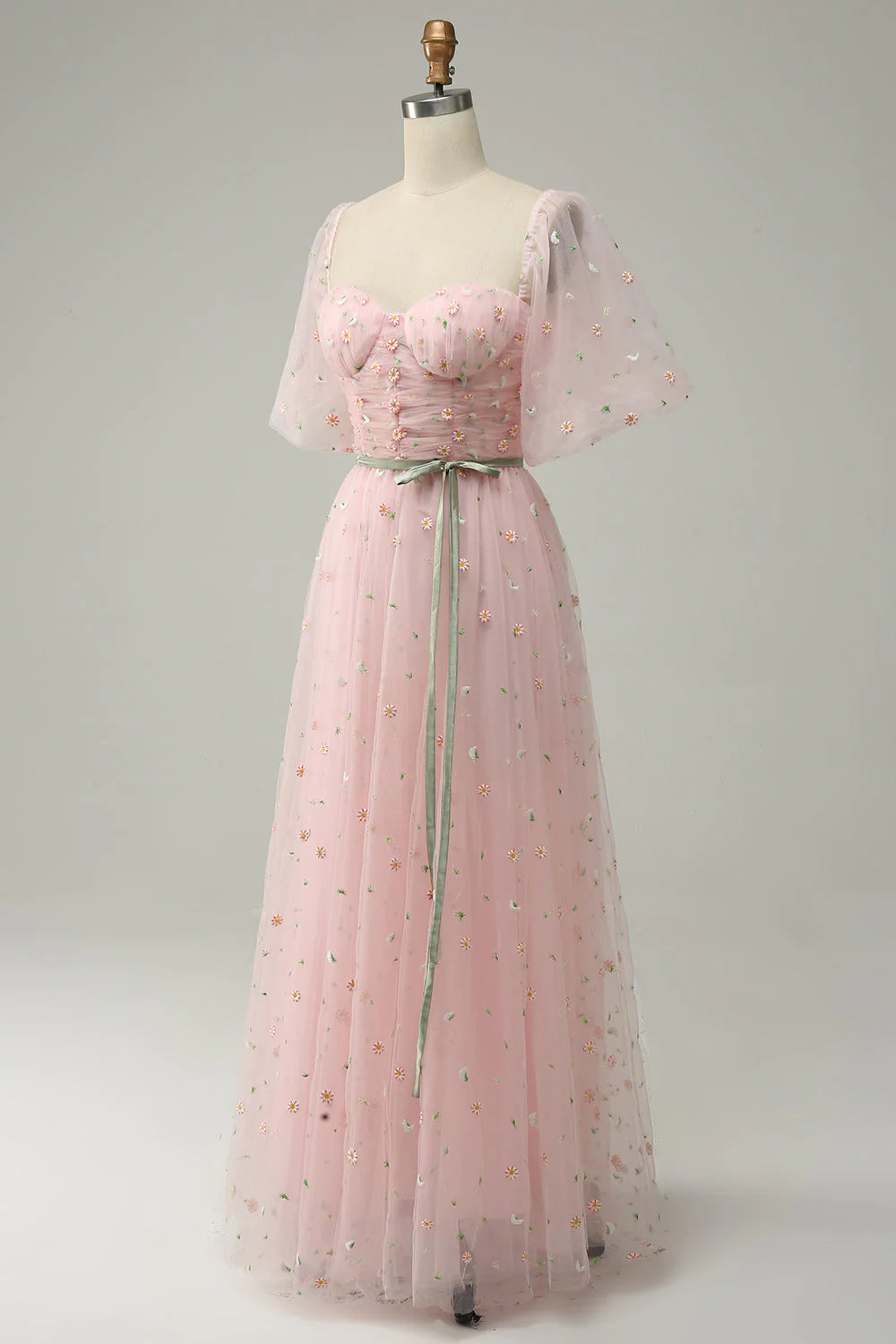 A-Linie Sweetheart Blush Langes Ballkleid mit Stickerei