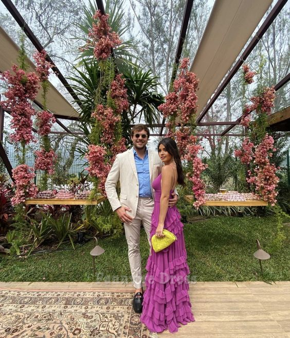 A-Linie V-Ausschnitt Spaghettiträger Stufen Lila Abendkleider Brautjungfernkleider Abendkleid Ballkleid