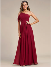 A-Linie Hochzeitsgastkleider Elegantes Kleid Formelle Hochzeit Bodenlang Ärmellos Ein-Schulter Chiffon mit gerüschtem Schlitz