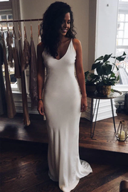 Strand Etuikleid V-Ausschnitt Sweep/Pinsel zug Ärmellos Brautkleider