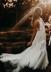 Bohemian V-Ausschnitt Rückenfrei Romantische Verträumte Brautkleider Brautkleider