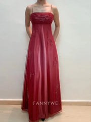 Elegante, exquisite Stickerei mit Perlenstickerei und Spaghettiträger, lange Tüll-Abendkleider, Brautjungfernkleider, Abendkleid, Ballkleid