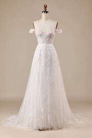 Elfenbeinfarbenes, abnehmbares, schulterfreies Korsett-Brautkleid aus Tüll
