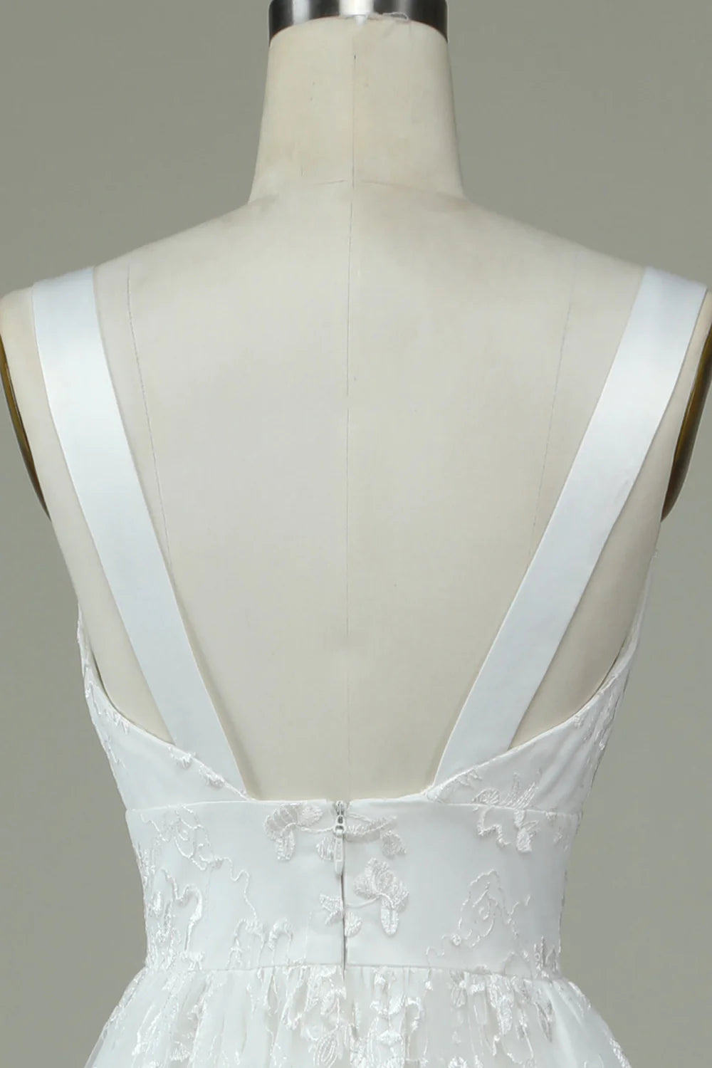 Elfenbeinfarbenes Spitzen-Brautkleid mit V-Ausschnitt und Schlitz