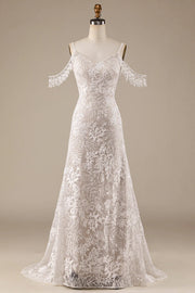 Elfenbeinfarbenes Spitzenbrautkleid mit Fransen